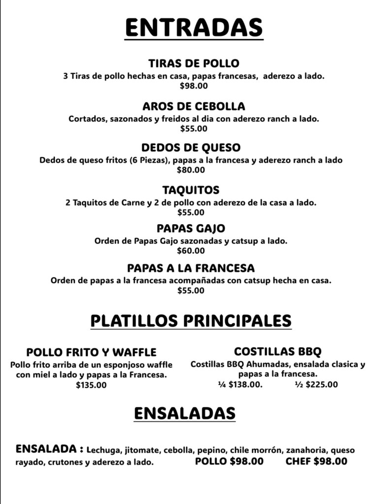Lechuga , jamon, lomo ahumado, tocino, queso, jitomate, cebolla, pepino, granos de elotes, aceitunas verdes, crutones y aderezo a elegir.