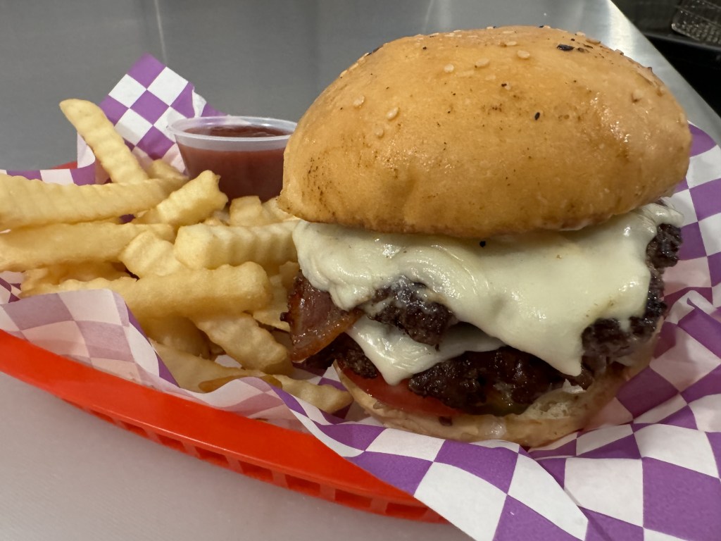 Doble carne de hamburguesa, doble queso, Tocino y Aderezo.