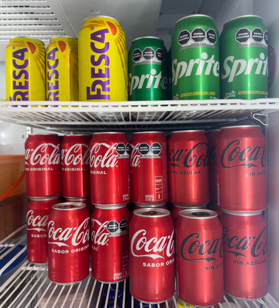 Coca Cola, Coca Sin Azúcar, Sprite, Crush de Naranja, Fresca, Dr. Pepper , Dr. Pepper Cream Soda, Fuze Tea, Caballito.